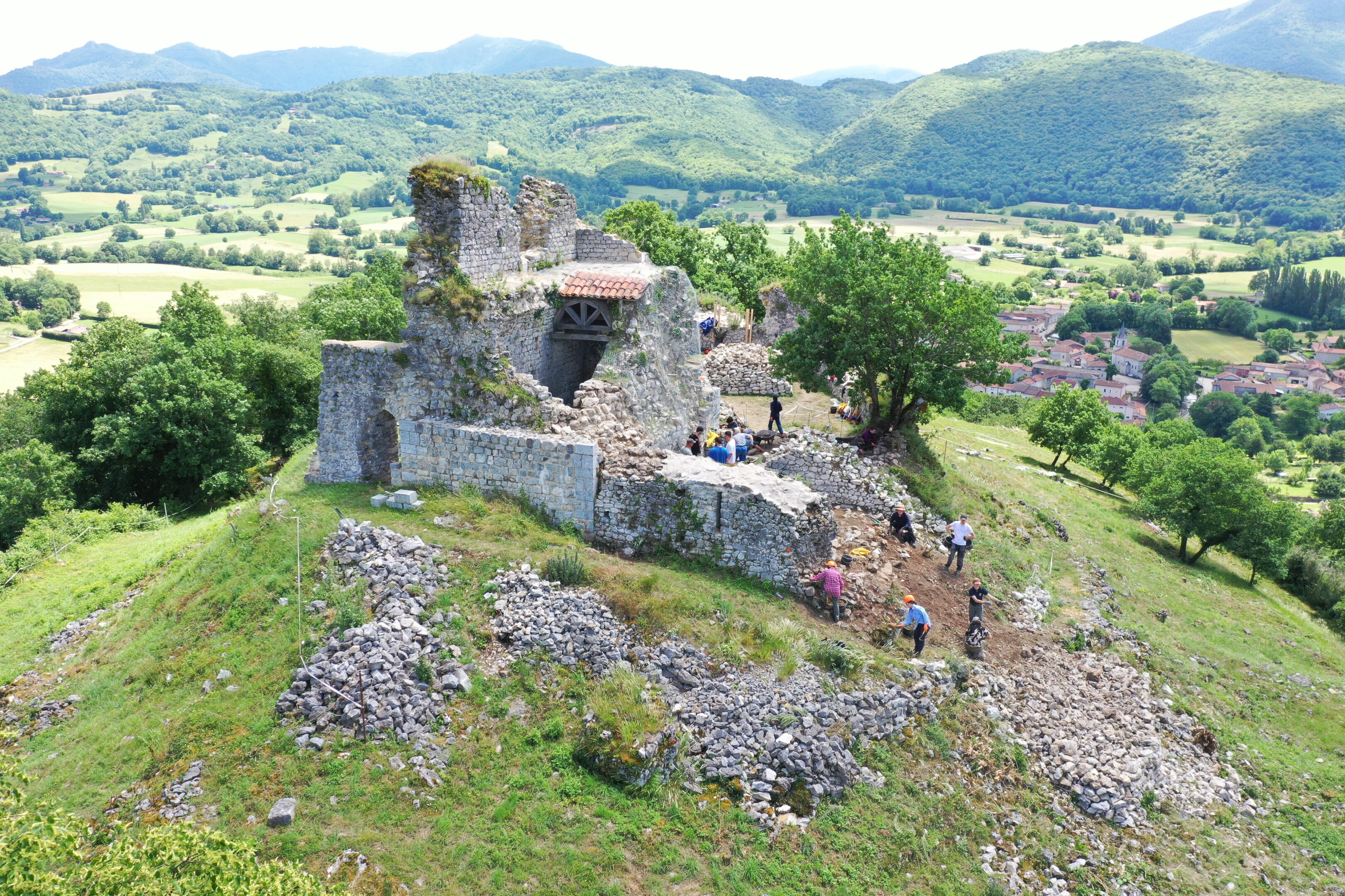 Nous avons commencé par deux années de débroussaillage intense pour mettre au jour les vestiges du château et de son village médiéval extramuros.