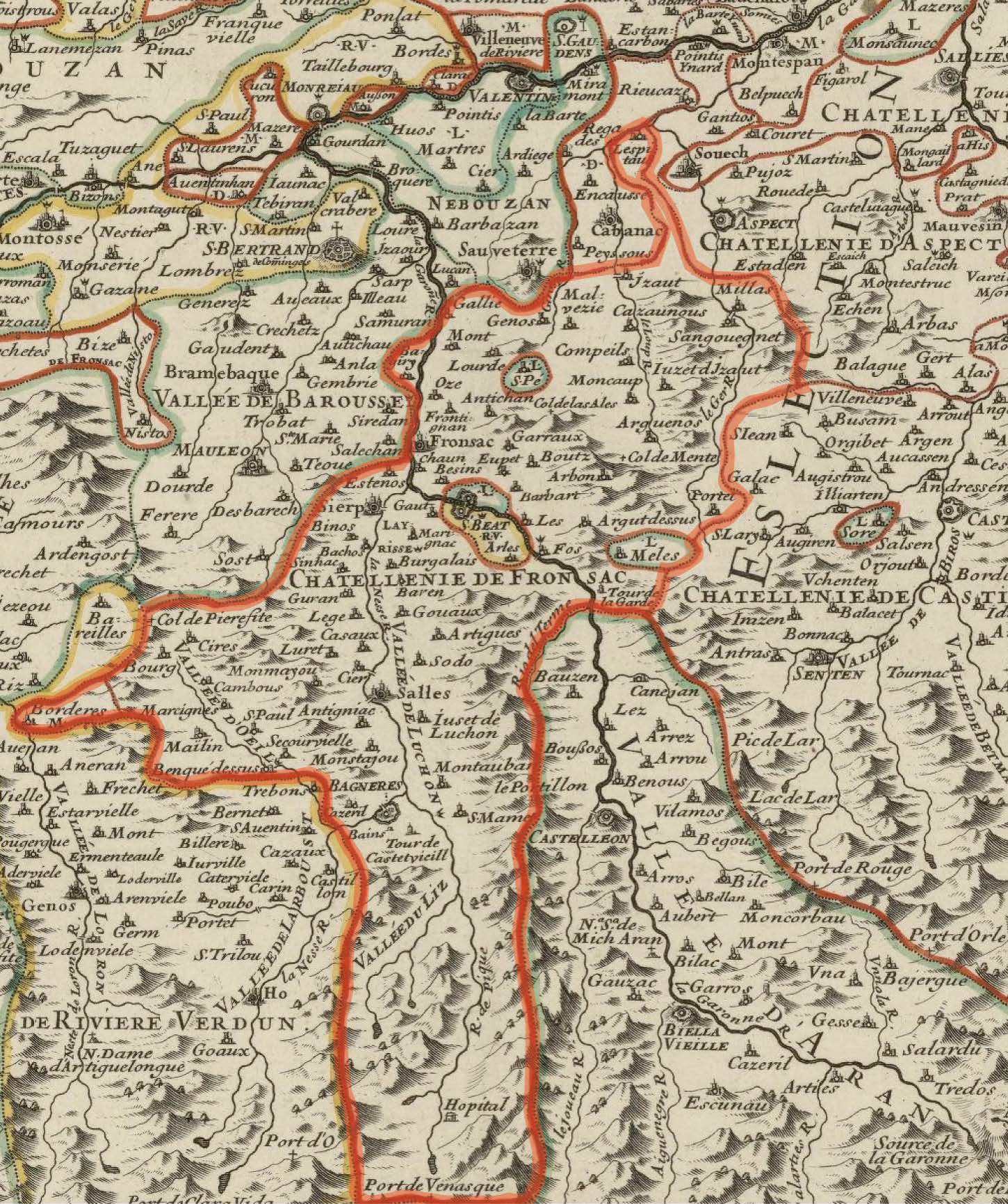 Au XIVe siècle la châtellenie s’étend bien au-delà du bassin d’Izaut. Elle comprend une bonne partie du Haut Comminges : bassin de Fronsac et haute vallée de la Garonne, Bavartès, Layrisse et les vallées Luchonnaises.